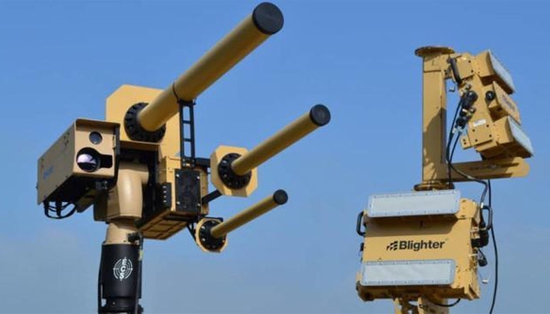 说到干扰阻断型反无人机系统,不得不提一下AUDS系统,这个又英国布莱特监控系统公司(Blighter Surveillance Systems)、切斯动力公司(Chess Dynamics)和恩特普赖斯控制系统公司(Enterprise Control Systems)共同研发的反无人机系统算得上是去年最为著名的反无人机装置了,该系统主要采用一种高功率射电波来消灭无人机。简单的说,这种射电波能有效阻断无人机通讯,并能够在半空中关闭无人机。该防卫系统的攻击距离也非常远,可以攻击1.6公里以外的威胁无人机,瞄准目标只需10-15秒,还能对无人机发动“蜂群攻击”,一次性击落多架无人机,对黑飞的无人机威胁很大。