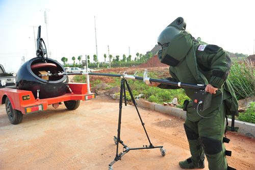 每一次的工作对于排爆手都是一次生与死的选择题,只有一次的机会做出选择,每一次的工作排爆手都要穿上厚重的排爆服。35公斤重的排爆服是排爆手最后一道防护线,然而,它看似坚不可摧,却只能在1米开外抵挡一定爆炸产生的杀伤力。从国内外一些失败的排爆任务来看,一旦遇到专家级爆炸装置爆炸,排爆服也只能保证排爆手留有全尸。